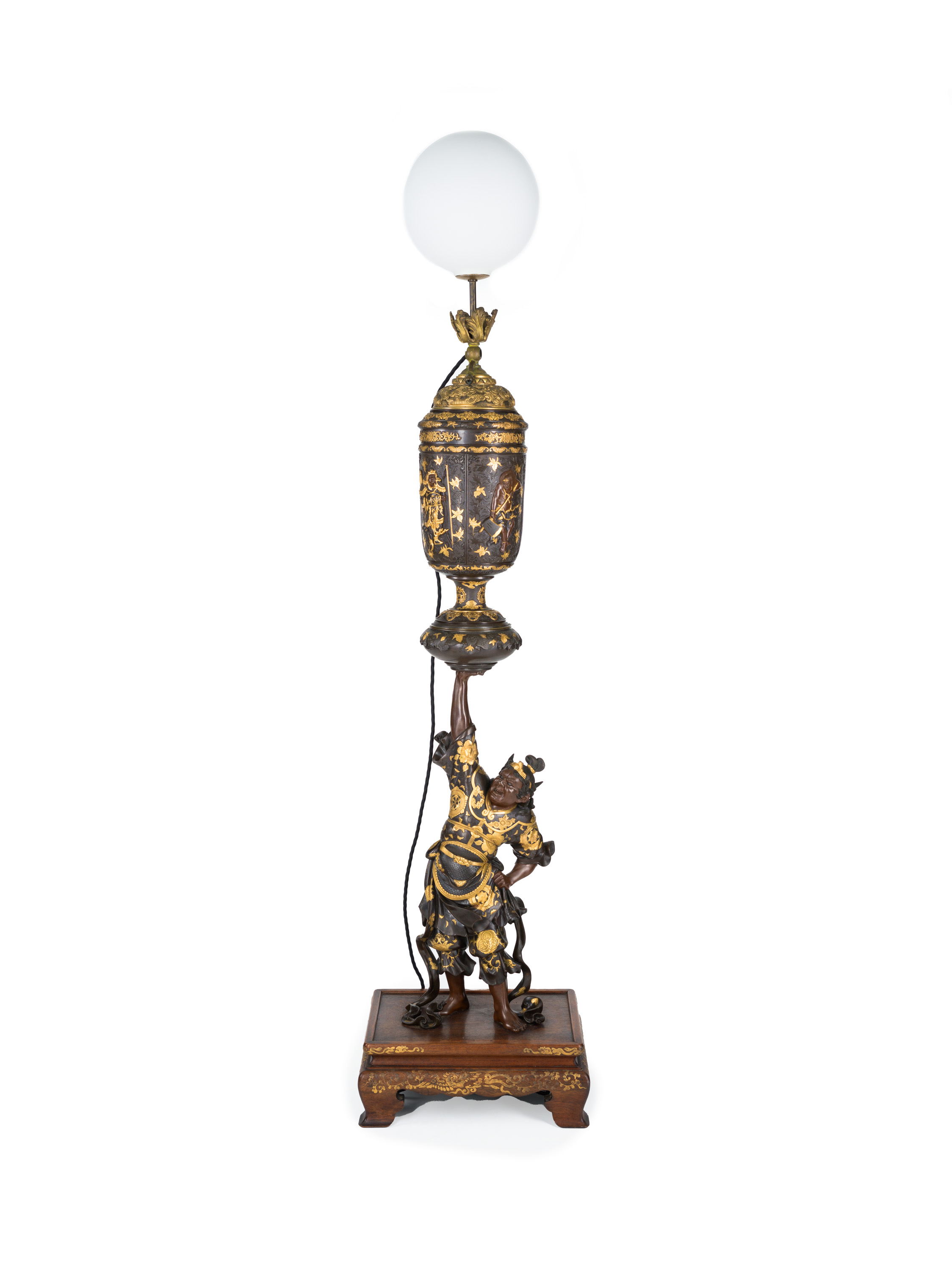 Parcel-Gilt Bronze Figure of a Warrior Holding Aloft a Koro